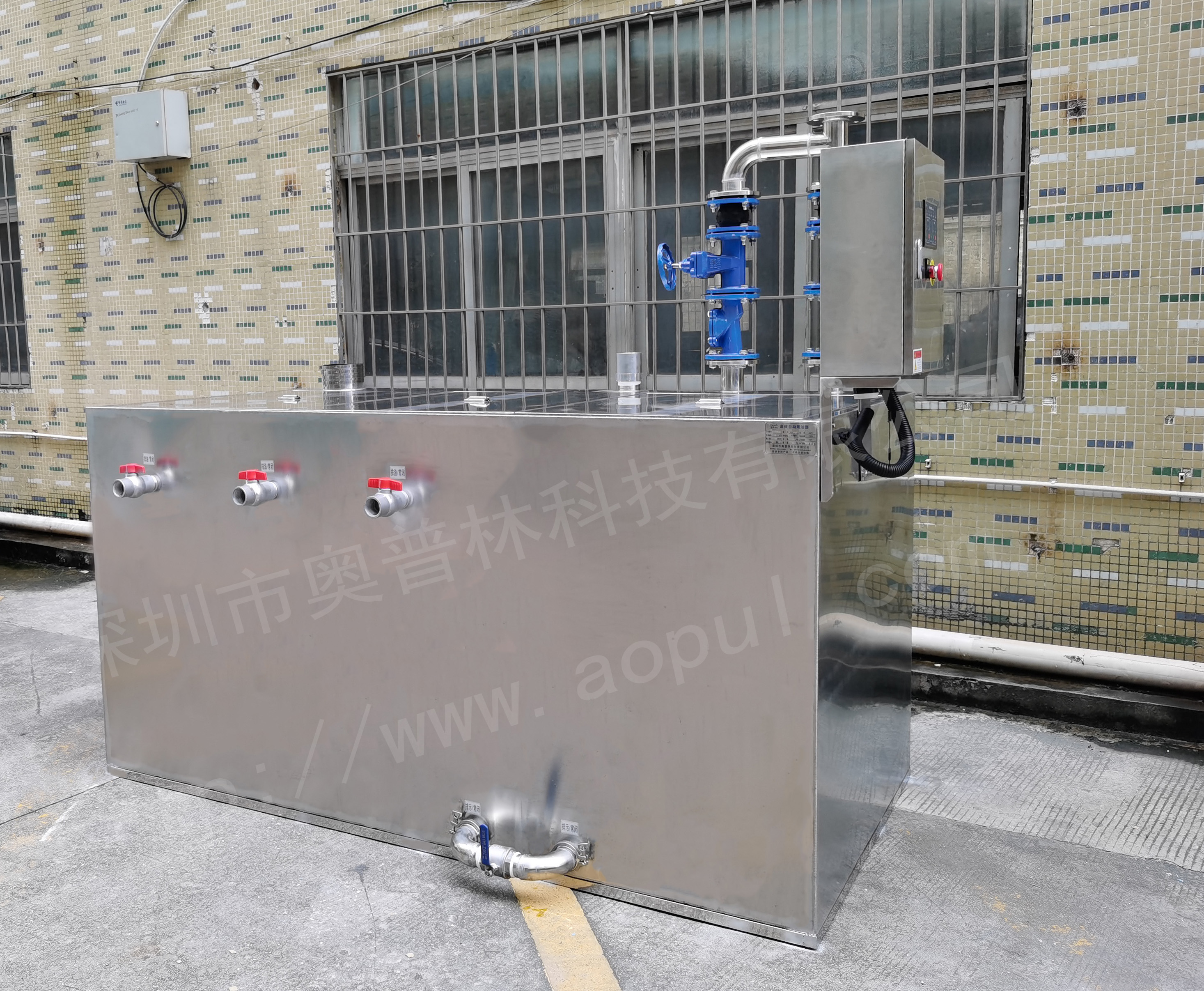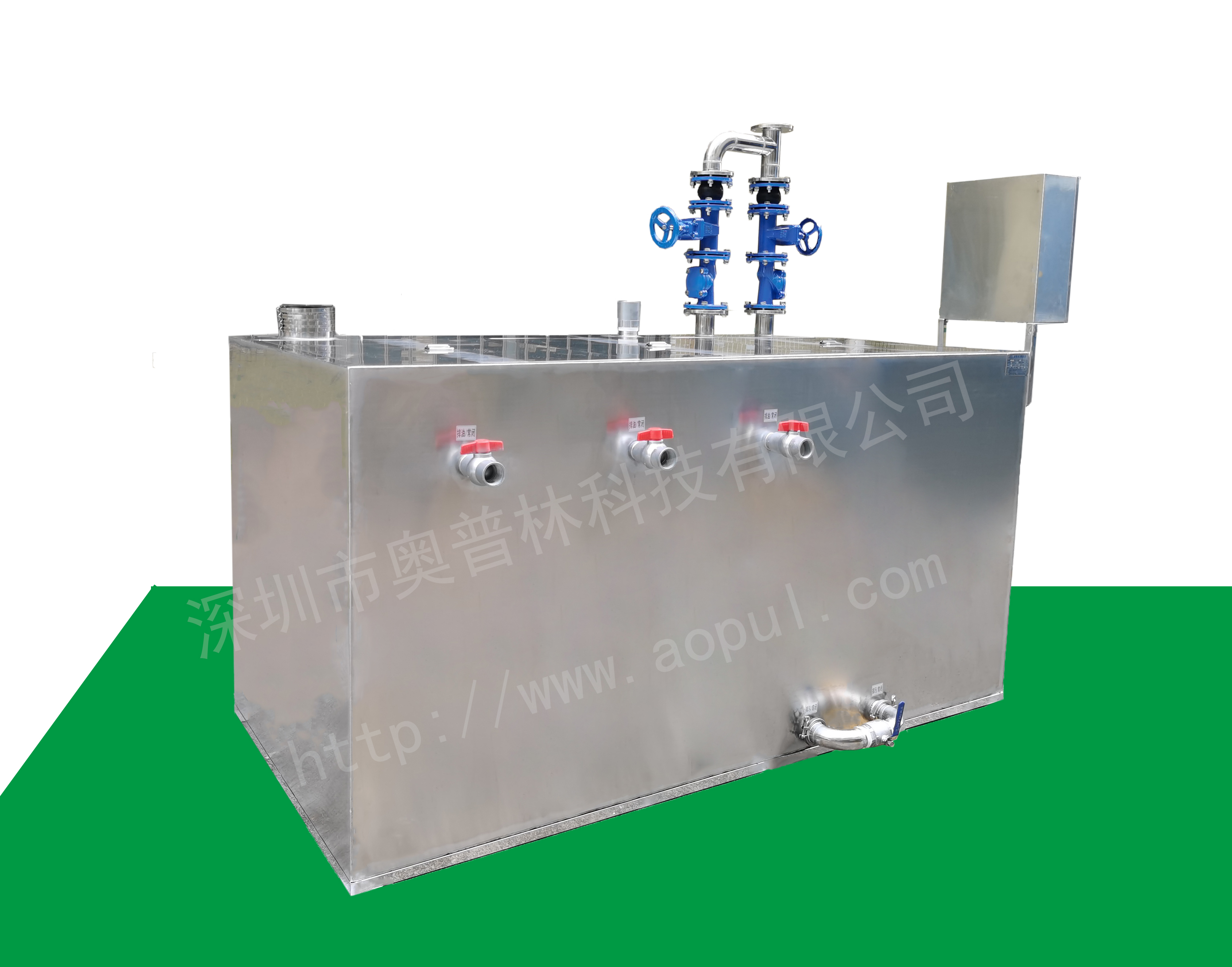 AUPR全自動型隔油器是我公司經(jīng)過多年的研究和創(chuàng)新,在傳統(tǒng)油水分離池的基礎上新開發(fā)出的一種、全自動油水分離裝置,可將90%以上的廢油回收再利用,設備出水的含油量可達到《污水排入城鎮(zhèn)下水道水質(zhì)標準》CJ 343-2010 中規(guī)定的A級標準(小于等于100mg/L),既能有效地保護環(huán)境,又可大量節(jié)約運行費用。本產(chǎn)品廣泛適用于含各種礦物油(原油除外)、植物油、動物油或其混合物的含油水的油水分離,如餐廳、酒樓、工廠、醫(yī)院、學校、機關單位、汽修廠、機修廠、油站和工礦企業(yè)等場所產(chǎn)生的含油污水的處理,可解決環(huán)境污染,以及在寒冷季節(jié)由于是油脂凝固所造成的下水道堵塞和污水漫溢的問題。